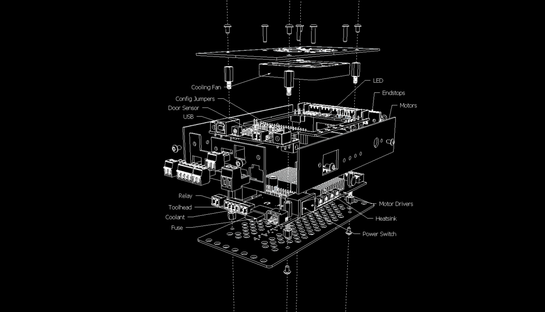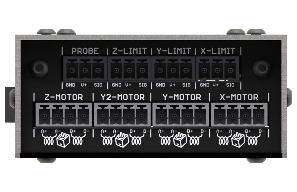 - Door Interlock Signal connector to allow machines with enclosures to pause/resume when the door opens/closes.