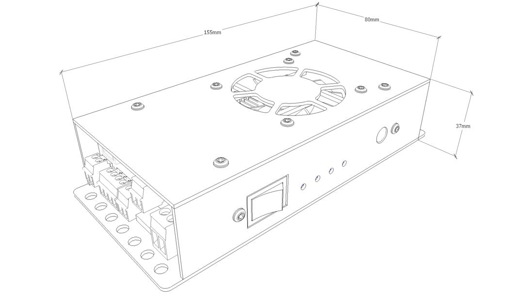 - Dimensions: 171mm (mounting flange included) x 80mm x 36.4mm.