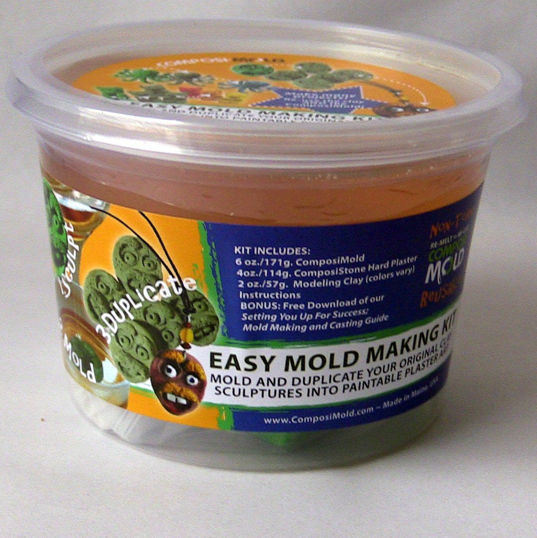 ComposiMold’s Easy Mold Making Kit contains everything a beginner mold maker will need to mold and duplicate original clay sculptures into paintable plaster art! ComposiMold’s greatest advantage is its re-usability and with this kit crafters and non-crafters alike will have the ability to use and re-use the material, encouraging experimentation without worrying about making mistakes! Sculpt a shape, make a ComposiMold mold, and duplicate in paintable ComposiStone Hard Plaster with all of the included materials. The creative possibilities for these plaster castings are endless; pendants, magnets, game pieces and more!
