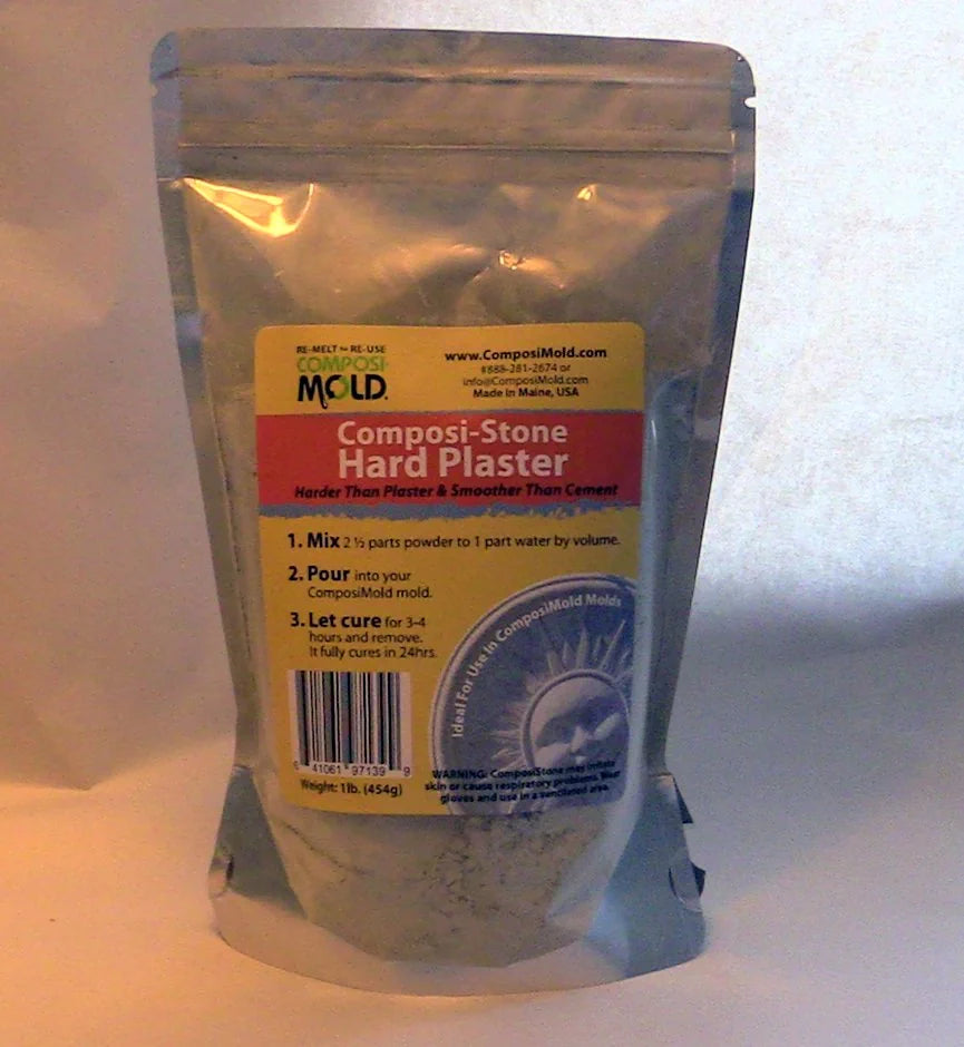 DIRECTIONS: Lightly coat your ComposiMold mold in Vegetable Oil-Mold Release. Thoroughly mix the ComposiStone and water in a 2.5:1 ratio and pour into your mold. Let cure for 3-4 hours and remove from mold. It fully cures in 24 hours.