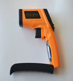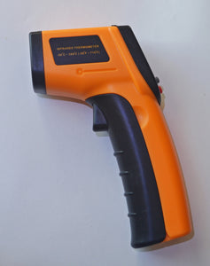 This handheld infrared thermometer is an extremely nice tool to have around. This thermometer works by sensing the infra-red radiation coming from an object. It measures temperatures quickly and accurately without contacting the surface. Just point the thermometer at the surface you want to measure and pull the trigger. In about 1 second it will display the temperature. A laser pointer is built into the unit to assist in aiming.