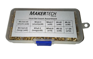 Keep a variety of metric and standard heat-set threaded inserts on hand with this handy assortment box!