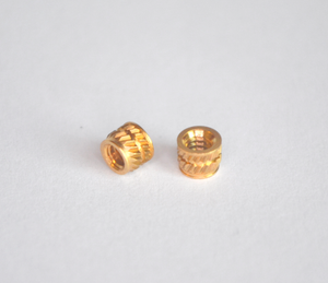 Heat-Set Threaded Inserts are a great option for 3D printed parts or making repairs to any thermoplastic part. They provide a much stronger connection than simply threading screws into the plastic. Brass will also last much longer than plastic threads and is less likely to cross thread which makes them ideal for parts that are assembled and disassembled often. These inserts can be easily and quickly installed by heating them with a standard soldering iron on a low-heat setting and using the soldering iron's tip to press the insert into place. The melted plastic will flow around the knurls and ridges on the insert as it is pressed in and solidify when cool, locking it in place. These inserts have #4-40 SAE (Imperial)threads.