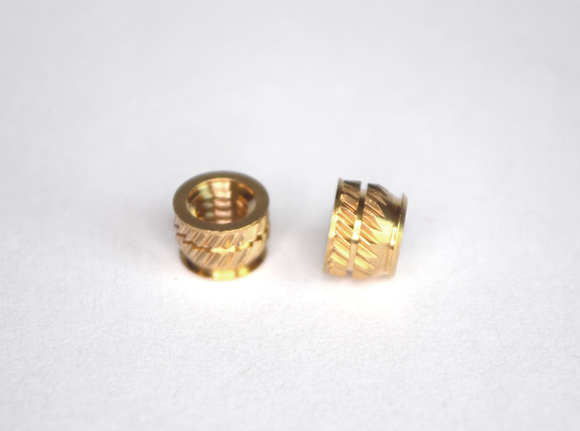 Heat-Set Threaded Inserts are a great option for 3D printed parts or making repairs to any thermoplastic part. They provide a much stronger connection than simply threading screws into the plastic. Brass will also last much longer than plastic threads and is less likely to cross thread which makes them ideal for parts that are assembled and disassembled often. These inserts can be easily and quickly installed by heating them with a standard soldering iron on a low-heat setting and using the soldering iron's tip to press the insert into place. The melted plastic will flow around the knurls and ridges on the insert as it is pressed in and solidify when cool, locking it in place. These inserts have #8-32 SAE (Imperial)threads.