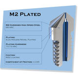 The Micro Swiss M2 Steel nozzles are designed for high temperatures, abrasion resistance, and with superior non-stick properties. The nozzles are machined from M2 high speed steel, hardened, and tempered to 68 HRC. They are then plated with Electroless Nickel Plating, and coated with WS2 coating.