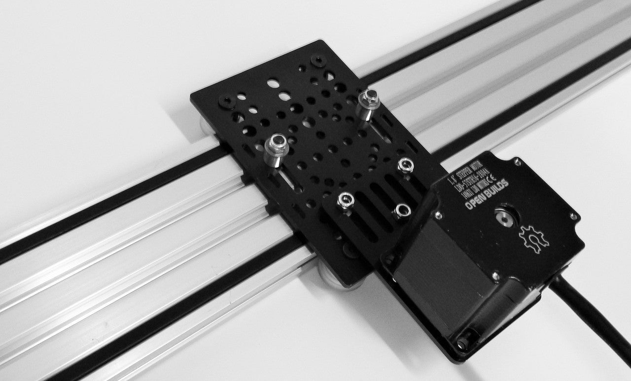 Easily mount a NEMA 23 Stepper motor onto any plate or V-Slot to create a belt & pinion or any other type of actuator.