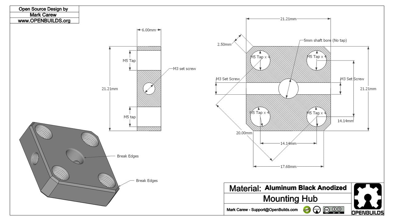 These mounting hubs are awesome for mounting to practically anything to gain a strong connection (4 M5 Screws) to a set screw locking shaft hub.