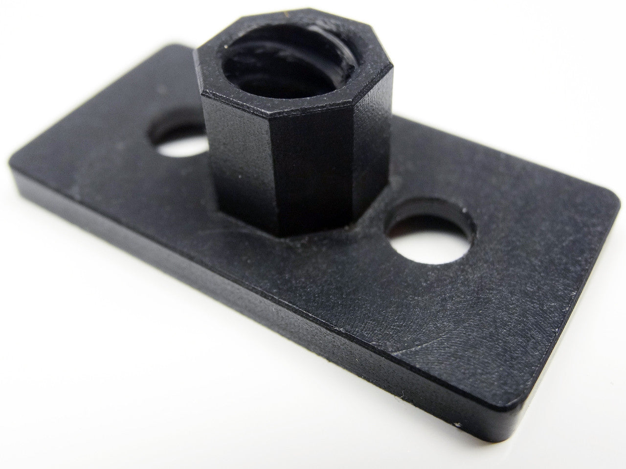 This V-Slot Acme Nut Plate is a perfect fit for any integrated acme screw transmission project. It can fit into the hollow inserts of 20x40, 20x60 and 20x80 V-Slot. You can use the OpenBuilds self tapping screws to mount these into the end holes of V-Slot. Many new and exciting projects are sure to surface using this integrated transmission component!