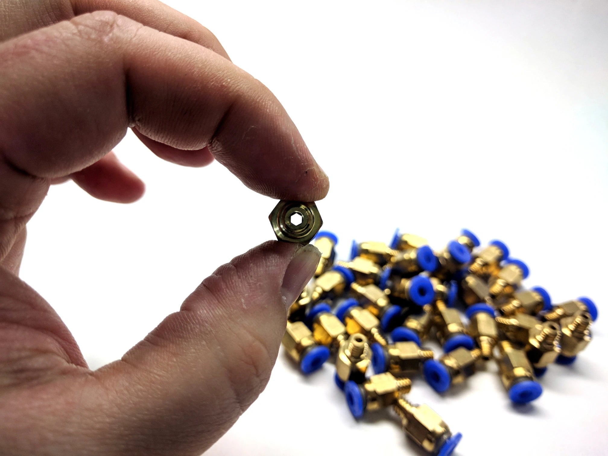 Note: These fittings are will not fit on Creality 3D printers that come with Bondtech extruders (ie. the CR-10MAX) The Bondtech Extruders use a fitting with a different thread pitch (G1/8)