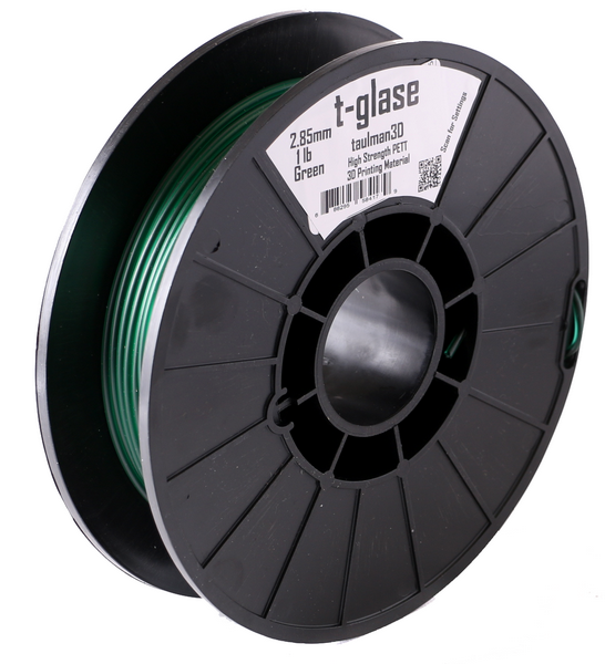 Taulman3D T-glase is a high quality and high strength Polyethylene terephthalate polymer that easily prints at 235°C - 240°C. A temperature easily obtained by most FFF 3D Printers. One major advantage of T-glase to all other polymers, is layer to layer bonding. Because the polymer bonds so well, there is no need to smash a large number of thin layers together to accommodate a good bond. T-glase has a very low shrinkage factor and is best printed on glass print beds heated from 60C to 80C depending on part size. T-glase also prints easily on glass heated to 45°C and using a thin coat of PVA (Elmers Glue All)